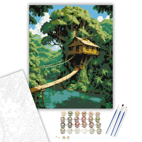 1 kép Számfestő.hu Rejtett Lombház a Dzsungelben - számfestő készlet – 40×50 cm (Keretre feszítve)