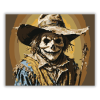 Rémisztő madárijesztő - számfestő készlet – 40×50 cm (Keret nélkül) Ez a hátborzongató festmény egy rémisztő madárijesztőt ábrázol, melynek koponyaszerű maszkja igazán kísérteties hatást kelt. A kép színei a sárgás és barnás árnyalatokban mozognak, ami tö