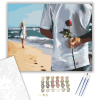 Romantikus gesztus - számfestő készlet – 40×50 cm (Keretre feszítve) Ez a festmény a romantika csendes ígéretét hordozza magában, mintha csak egy tengerparti találkozás pillanatát örökítené meg. Egy titokzatos gesztus bontakozik ki a háttérben, ahol az óc