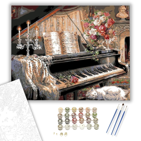 1 kép Számfestő.hu Rózsás Zongora - számfestő készlet – 40×50 cm (Keretre feszítve)