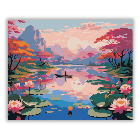 1 kép Számfestő.hu Rózsaszín és Narancs Lótuszok Naplementében - számfestő készlet