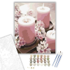 Rózsaszín gyetyák - számfestő készlet – 40×50 cm (Keretre feszítve) A kép megnyugtató, romantikus hangulatot áraszt, amely a nézőt egy csendes esti pillanatba repíti. A gyertyák fénye és a virágok jelenléte egy történetet mesél el a meghittségről és a ter