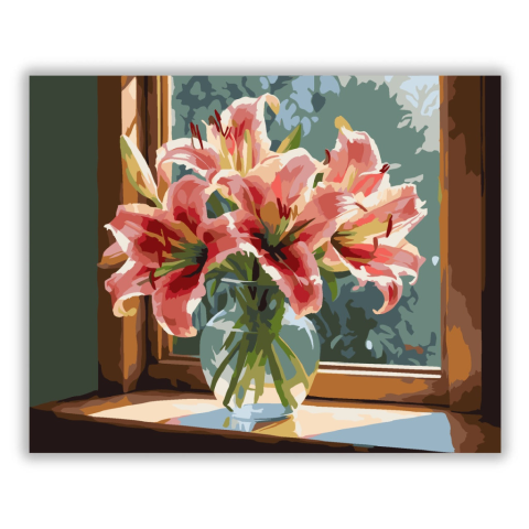 1 kép Számfestő.hu Rózsaszín Liliomok Az Ablakban - számfestő készlet