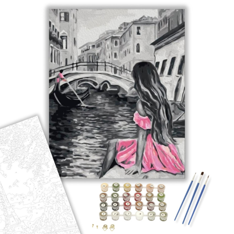 Rózsaszín Ruhás Hölgy - számfestő készlet – 40×50 cm (Keretre feszítve) Készíts gyönyörű műalkotásokat, előzetes festő tudás nélkül! Éld át az alkotás gyönyörű pillanatait és varázslatos hangulatát! Akkor is gyönyörű festményeket hozhatsz létre, ha még ne