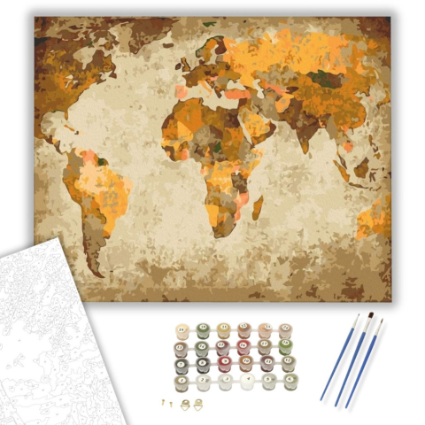 1 kép Számfestő.hu Sárga és Barna Világtérkép - számfestő készlet – 40×50 cm (Keretre feszítve)