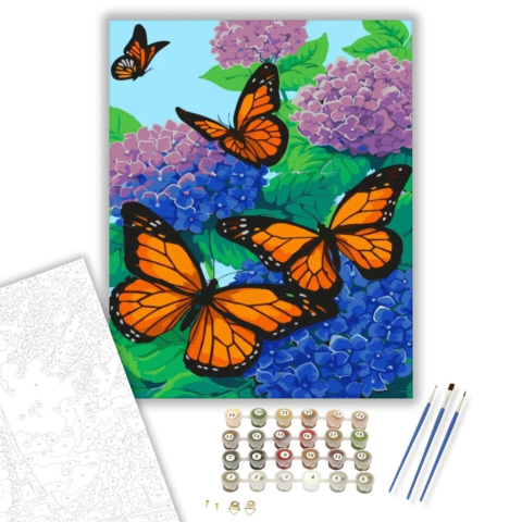 Sárga pillangók - számfestő készlet – 40×50 cm (Keretre feszítve) A festmény vibráló és életteli, ahogy a sárga pillangók kecsesen táncolnak a virágok között. A kompozíció egy varázslatos kertet idéz meg, ahol minden pillanat új felfedezést tartogat. Az é
