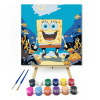 Sárga szivacs - gyerek számfestő készlet – 20×20 cm (Keretre feszítve) Ez a kép egy mosolygós, sárga szivacsot ábrázol, aki boldogan úszkál a tenger alatti világban. A ragyogó kék és arany színek vidámságot sugároznak. Tökéletes választás minden kis festő