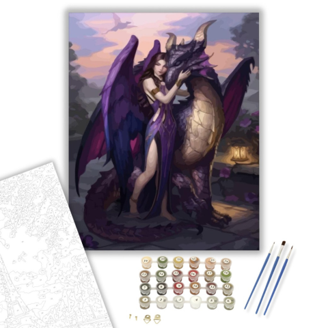 Sárkánnyal - számfestő készlet – 40×50 cm (Keretre feszítve) Ez a festmény egy varázslatos világ kapuját nyitja meg, ahol a misztikum és az érzelmek találkoznak. Egy titokzatos történet bontakozik ki, ahol a sárkány és az ember közötti különleges kapcsola