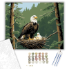 Sasfészek a Magasban - számfestő készlet – 40×50 cm (Keretre feszítve) A festmény egy fészekben ülő sas családot ábrázol, magas fák között rejtőzve. A zöld és barna árnyalatok természetközeli, békés hangulatot sugallnak. A kép a családi kötelék erősségét
