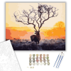Szarvas Nagy Agancsokkal - számfestő készlet – 40×50 cm (Keretre feszítve) A festmény nyugodt, mégis lenyűgöző atmoszférát teremt, amely az alkonyati fényekbe burkolózó természet csendjét idézi. Egy titokzatos történet bontakozik ki a néző előtt, ahol a s