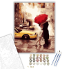 Szerelem New Yorkban - számfestő készlet – 40×50 cm (Keretre feszítve) A festmény romantikus, nosztalgikus hangulatot áraszt, amely az esős városi utcák varázsát idézi. Egy pár szenvedélyes találkozása bontakozik ki a kép közepén, piros esernyővel a fejük