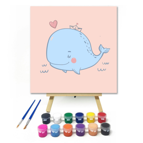 1 kép Számfestő.hu Szerelmes Bálna - gyerek számfestő készlet – 20×20 cm (Keretre feszítve)