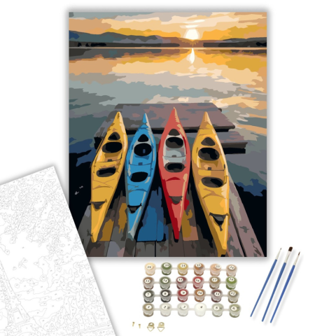 1 kép Számfestő.hu Színes Kajakok a Naplementében - számfestő készlet – 40×50 cm (Keretre feszítve)
