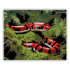 Színes Kígyó a Mohás Erdőben - számfestő készlet – 40×50 cm (Keret nélkül) A festmény egy élénk színű tejkígyót ábrázol, amint a mohás erdő talaján kúszik. A kígyó piros, fekete és fehér csíkjai kontrasztban állnak a buja zöld háttérrel. A kép a természet