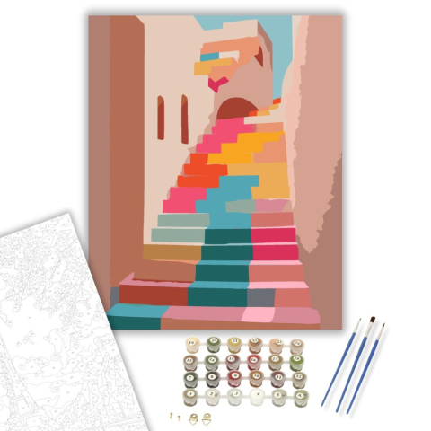 1 kép Számfestő.hu Színes Kocka Lépcső - számfestő készlet – 40×50 cm (Keretre feszítve)