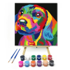 Színes Kutyus - gyerek számfestő készlet – 20×20 cm (Keretre feszítve) Ez a kép egy vidám, szivárványszínű kutyust ábrázol, aki boldogan néz a világba. A ragyogó színek életre keltik a barátságos kis kutyust, és izgalmas kalandra hívják a gyerekeket. Töké