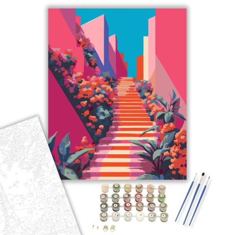 1 kép Számfestő.hu Színes Lépcsősor Növényekkel - számfestő készlet – 40×50 cm (Keretre feszítve)