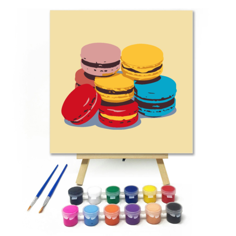 1 kép Számfestő.hu Színes macaronok - gyerek számfestő készlet – 20×20 cm (Keretre feszítve)