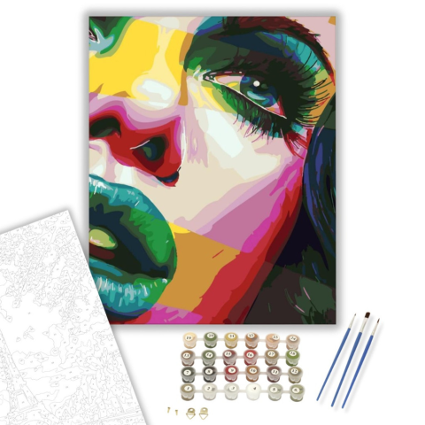 Színes női arc - számfestő készlet – 40×50 cm (Keretre feszítve) Készíts gyönyörű műalkotásokat, előzetes festő tudás nélkül! Éld át az alkotás gyönyörű pillanatait és varázslatos hangulatát! Akkor is gyönyörű festményeket hozhatsz létre, ha még nem feste