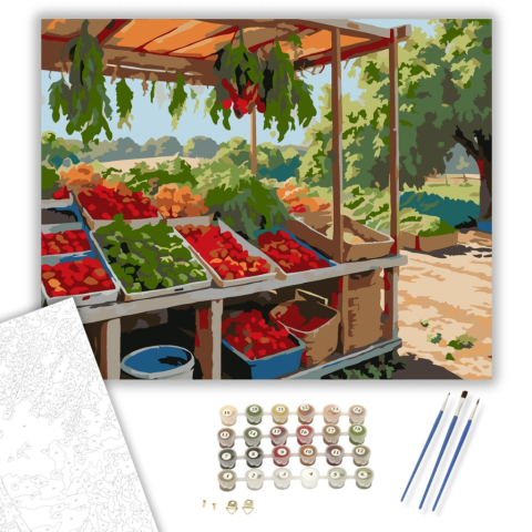 1 kép Számfestő.hu Színes Termények a Piacon - számfestő készlet – 40×50 cm (Keretre feszítve)