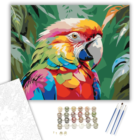 1 kép Számfestő.hu Színpompás Papagáj Élénk Textúrákkal - számfestő készlet – 40×50 cm (Keretre feszítve)
