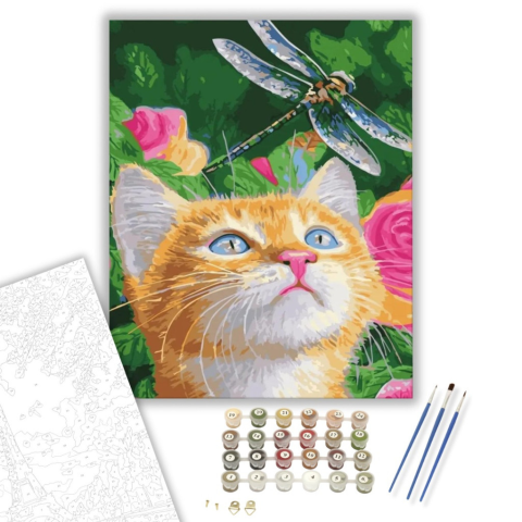 Szitakötő és cica - számfestő készlet – 40×50 cm (Keretre feszítve) Készíts gyönyörű műalkotásokat, előzetes festő tudás nélkül! Éld át az alkotás gyönyörű pillanatait és varázslatos hangulatát! Akkor is gyönyörű festményeket hozhatsz létre, ha még nem fe