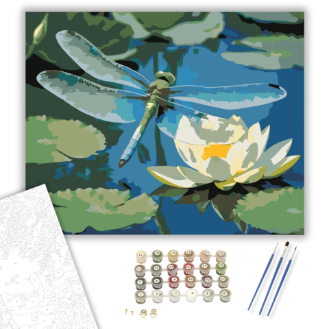 1 kép Számfestő.hu Szitakötő Lótuszvirágon - számfestő készlet – 40×50 cm (Keretre feszítve)