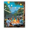 Születésnapi Ünneplés a Kertben - számfestő készlet – 40×50 cm (Keret nélkül) A festmény egy születésnapi ünnepet ábrázol a szabadban, ahol barátok emelnek poharat egy tortával teli asztalnál, miközben színes lampionok lógnak a fák között. A kompozíció él