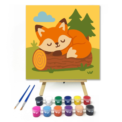 1 kép Számfestő.hu Szundikáló Rókakölyök a Rönkön - gyerek számfestő készlet