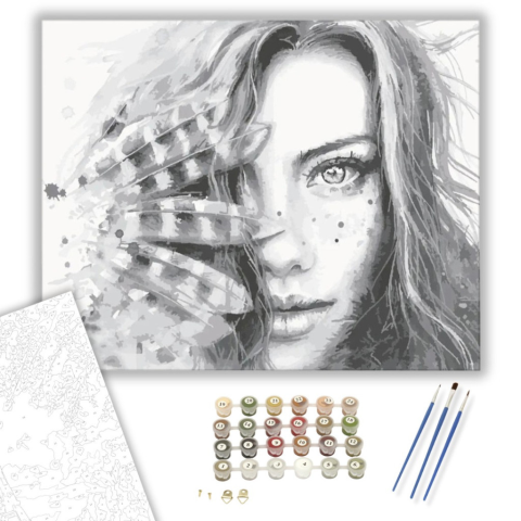 Szürke tollakkal - számfestő készlet – 40×50 cm (Keretre feszítve) Készíts gyönyörű műalkotásokat, előzetes festő tudás nélkül! Éld át az alkotás gyönyörű pillanatait és varázslatos hangulatát! Akkor is gyönyörű festményeket hozhatsz létre, ha még nem fes