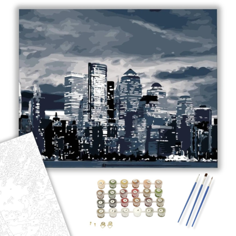 Szürke város - számfestő készlet – 40×50 cm (Keretre feszítve) Készíts gyönyörű műalkotásokat, előzetes festő tudás nélkül! Éld át az alkotás gyönyörű pillanatait és varázslatos hangulatát! Akkor is gyönyörű festményeket hozhatsz létre, ha még nem festett