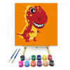 T-Rex - gyerek számfestő készlet – 20×20 cm (Keretre feszítve) Ez a kép egy vidám T-Rexet ábrázol, aki nagy mosollyal néz ránk a narancssárga háttér előtt. A piros és sárga színek izgalmas kalandra invitálnak. Tökéletes választás a gyerekek első dínós fes