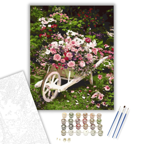 1 kép Számfestő.hu Talicska virágok - számfestő készlet – 40×50 cm (Keretre feszítve)
