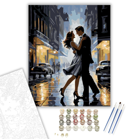 1 kép Számfestő.hu Táncoló Szerelmespár Esőben - számfestő készlet – 40×50 cm (Keretre feszítve)