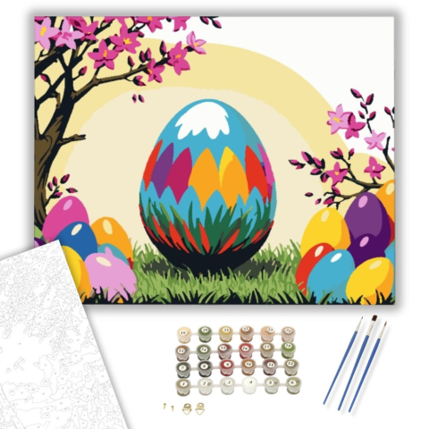 Tavaszi Színkavalkád - húsvéti számfestő készlet – 40×50 cm (Keretre feszítve) Készíts gyönyörű műalkotásokat, előzetes festő tudás nélkül! Éld át az alkotás gyönyörű pillanatait és varázslatos hangulatát! Akkor is gyönyörű festményeket hozhatsz létre, ha