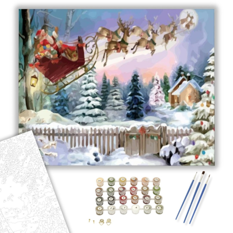 1 kép Számfestő.hu Télapó a suhanó szánnal - számfestő készlet – 40×50 cm (Keretre feszítve)