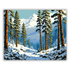 Téli Erdő Csendje - számfestő készlet – 40×50 cm (Keret nélkül) A képen egy varázslatos téli erdő tárul elénk, ahol hó borította fenyőfák állnak őrt a hegyek nyugodt magaslata előtt. Az élénk zöldek és a hideg fehér hó kontrasztja életre kelti a tájat a h