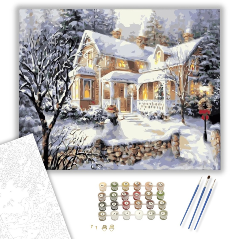 1 kép Számfestő.hu Téli otthon - számfestő készlet – 40×50 cm (Keretre feszítve)