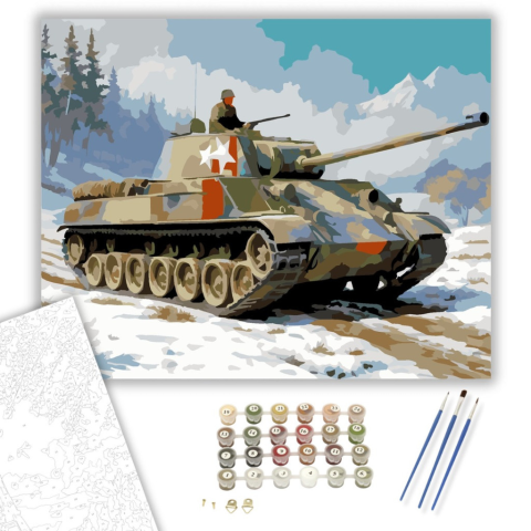 1 kép Számfestő.hu Téli Tájban Haladó Tank - számfestő készlet – 40×50 cm (Keretre feszítve)