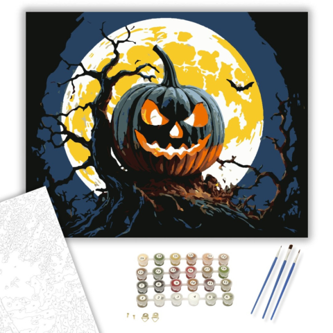 1 kép Számfestő.hu Teliholdas töklámpás éjszakája - számfestő készlet – 40×50 cm (Keretre feszítve)