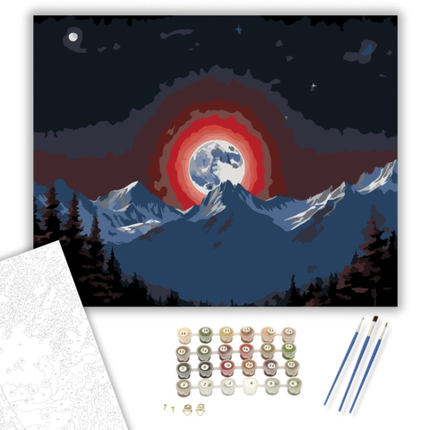 1 kép Számfestő.hu Teljes Holdfogyatkozás Hegyi Tájjal - számfestő készlet – 40×50 cm (Keretre feszítve)