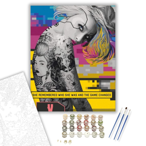 Tetovált Lány - számfestő készlet – 40×50 cm (Keretre feszítve) Készíts gyönyörű műalkotásokat, előzetes festő tudás nélkül! Éld át az alkotás gyönyörű pillanatait és varázslatos hangulatát! Akkor is gyönyörű festményeket hozhatsz létre, ha még nem festet