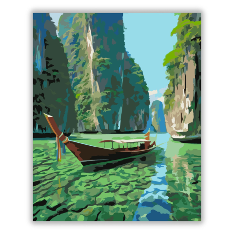 1 kép Számfestő.hu Thai Hosszúfarkú Csónak a Mesés Sziklák Között - számfestő készlet