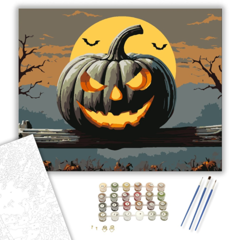 1 kép Számfestő.hu Tökfej a telihold alatt - számfestő készlet – 40×50 cm (Keretre feszítve)