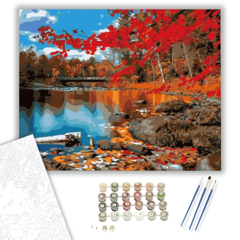 1 kép Számfestő.hu Tópart Ősszel - számfestő készlet – 40×50 cm (Keretre feszítve)