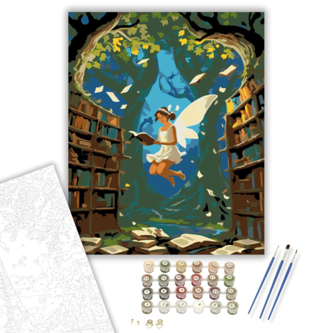 1 kép Számfestő.hu Tündér az Ősi Könyvtárban - számfestő készlet – 40×50 cm (Keretre feszítve)