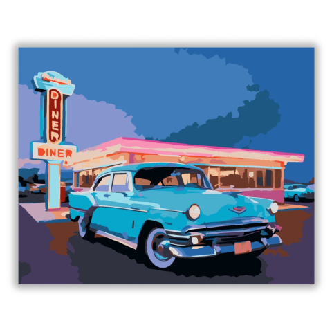 1 kép Számfestő.hu Türkiz Retro Autó az 50-es Évek Étkezdéjénél - számfestő készlet