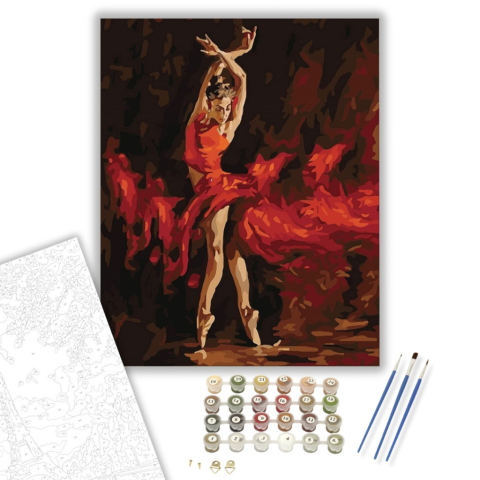 Tüzes Tánc - számfestő készlet – 40×50 cm (Keretre feszítve) Készíts gyönyörű műalkotásokat, előzetes festő tudás nélkül! Éld át az alkotás gyönyörű pillanatait és varázslatos hangulatát! Akkor is gyönyörű festményeket hozhatsz létre, ha még nem festettél