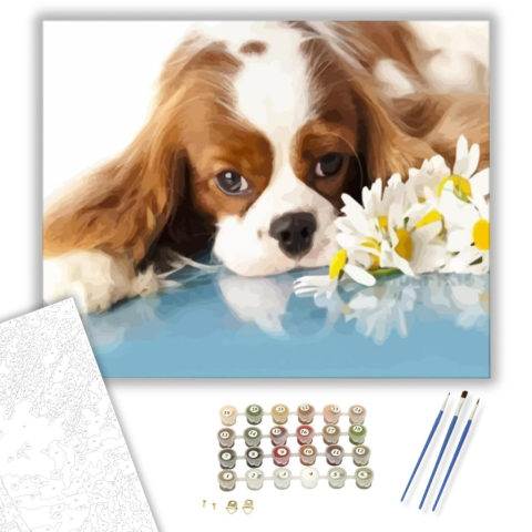 1 kép Számfestő.hu Unatkozó kiskutya - számfestő készlet – 40×50 cm (Keretre feszítve)