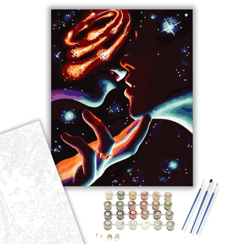 Univerzum csodája - számfestő készlet – 40×50 cm (Keretre feszítve) Ez a festmény az univerzum végtelen csodáját idézi meg, misztikus és elgondolkodtató érzéseket keltve. A kép egy rejtélyes történetet mesél el az űr és az emberi lélek kapcsolatáról. Az é